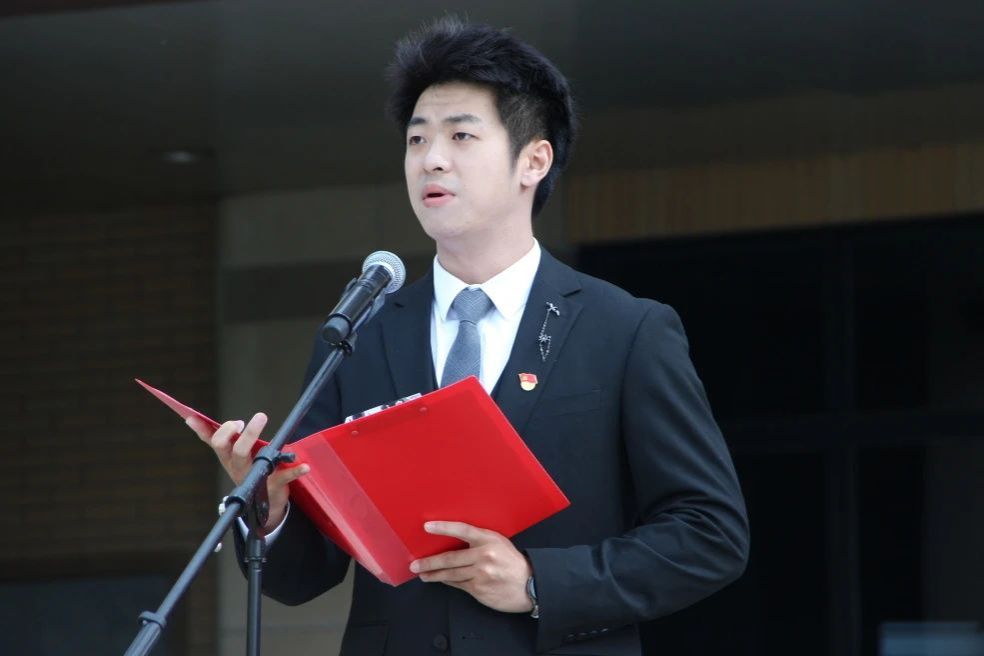 智能技术学部学生代表靳知鉴和艺术学院学生代表陈馨洁作“国旗下的演讲”,他们表示会继承和发扬五四精神,坚定不移听党话、跟党走,争做有理想、敢担当、能吃苦、肯奋斗的新时代好青年,以奋斗姿态激扬青春、实现梦想。