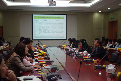 赵正桥以“辅导员工作的实践和思考”为题交流了自己的经验和学院特色管理方法,深入浅出地介绍学生工作中遇到的管理问题和解决途径,引起全体辅导员的兴趣,大家积极互动交流。熊焰以“辅导员队伍建设专业化建设”为主题,与大家进行深入的探讨。