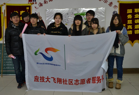 我校艺术与设计学院“飞翔”志愿者于近日参加了由漕河泾社区举行的优秀志愿者组织的授旗仪式。“飞翔”志愿者长期坚持漕河泾社区志愿者服务,定期每周前往社区与孤寡老人进行谈心活动,热心帮助街区老人解决问题,漕河泾社区为表示感谢,特予授旗。
