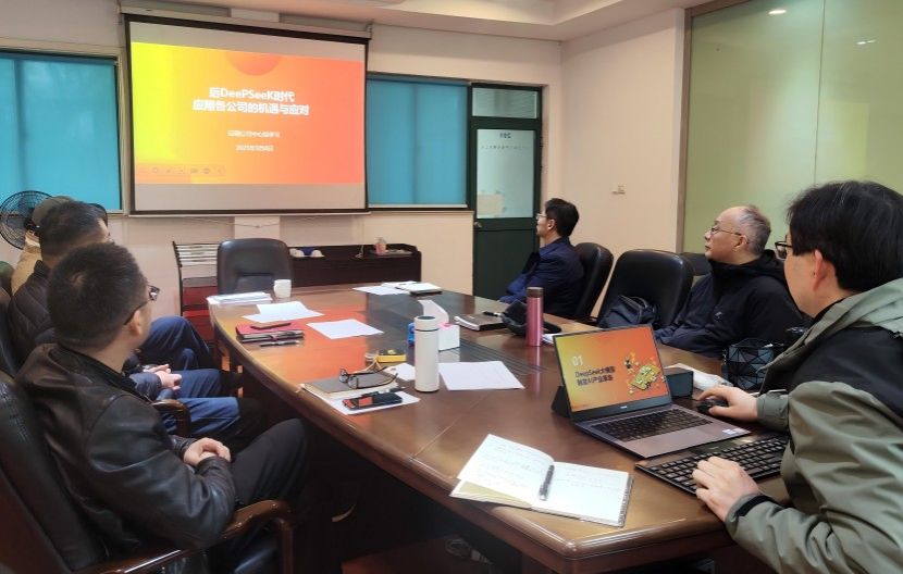 应翔公司副总经理张化以《后DeepSeek时代应翔各公司的机遇与应对》为题为中心组成员领学,主要介绍了DeepSeek大模型在低成本、高效能和战略自主方面的突破创新,应翔、科技园职工在工作和生活中如何应用DeepSeek模型,重点分析了香料所AI+业务模块重构的可能性,在检测业务智能化、学术期刊智能编审与知识萃取、企业人员个性化培训和行业标准RAG知识库构建等方面进行创新尝试,以及实施技术路线与落地预算分配情况。