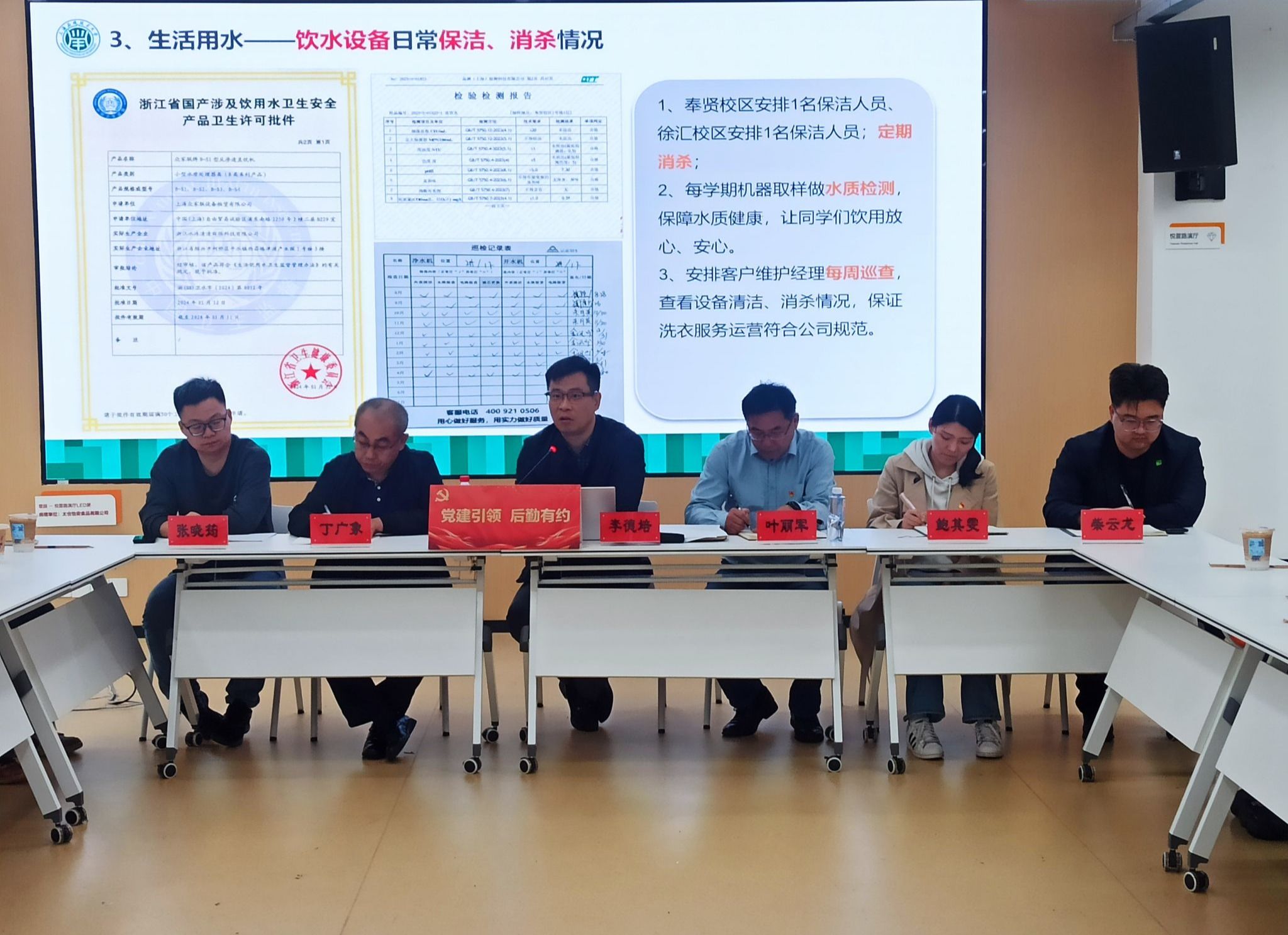 会上,后勤保障与服务中心副主任李德培首先介绍了学生公寓洗衣房设施设备的改造现状以及今后的发展方向、服务升级等内容。洗衣房服务单位上海众家联设备租赁有限公司负责人对洗衣房内各类设施设备的特色优势、使用规范、故障排除以及未来的服务升级措施进行了进一步解读。