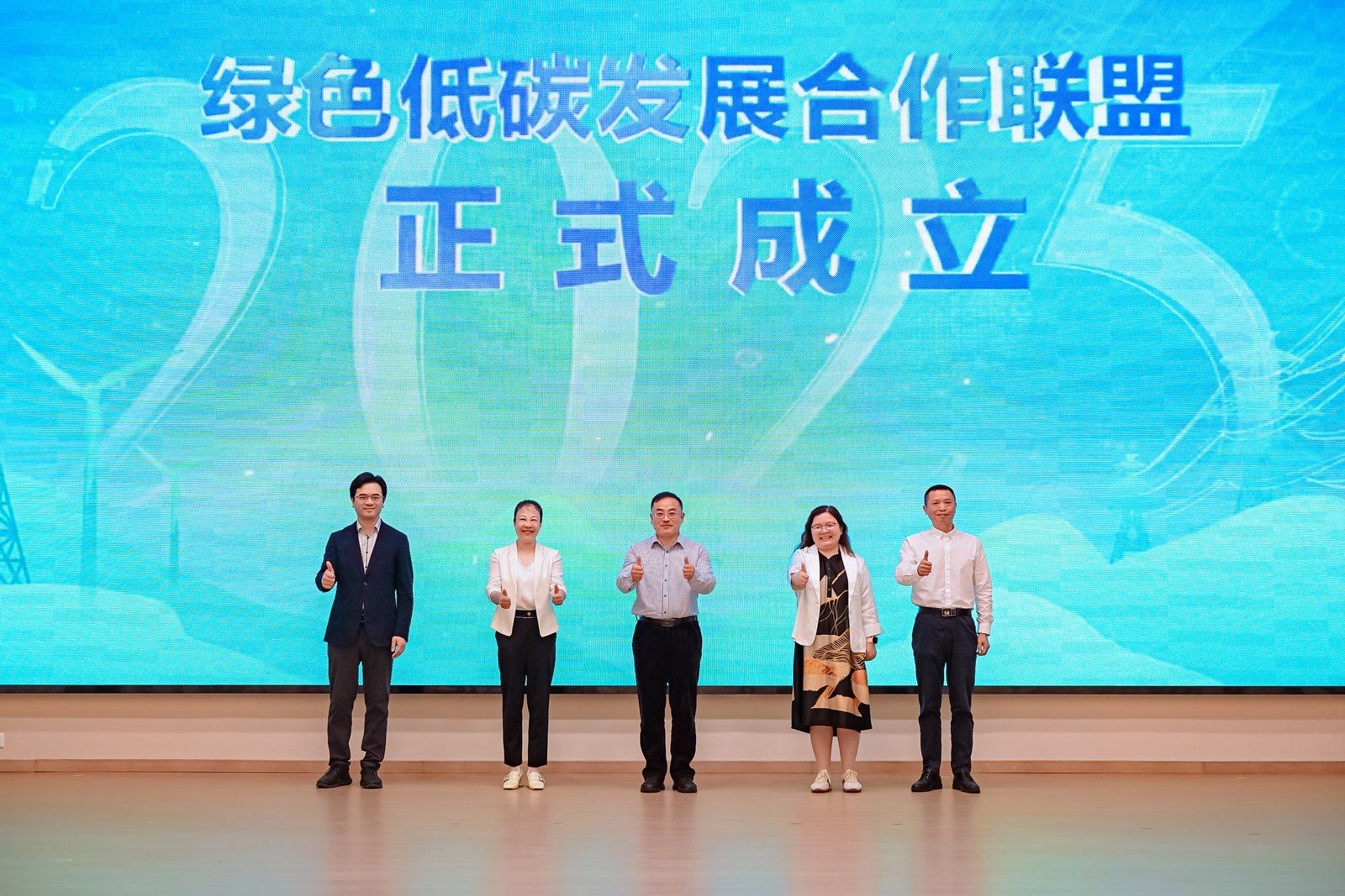 会上,奉贤区绿色低碳发展合作联盟成立,奉贤区工商联党组书记余仲威、上海市经信委产业绿色转型和发展处副处长张敏、奉贤区经委副主任徐晓峰、奉贤区生态环境局副局长郑古兵、我校生态学院党委副书记任玉英,共同为绿色低碳发展合作联盟成立按下手印。
