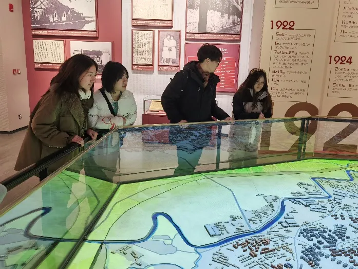 随后,团队参观了中共一大会址纪念馆,详细了解了中国共产党的光辉进程。从党的缔造者到领袖们的明智决策,从长征艰难曲折到抗战浴血奋战,每一件展品都令团队成员热血沸腾。在馆内模拟场景地图中,团队成员通过画笔和相机,记录下重要的红色资源和红色足迹,为后续实践做好准备。团队成员还在场馆出口的留言处依次进行留言,寄语伟大祖国,为党送上祝福。